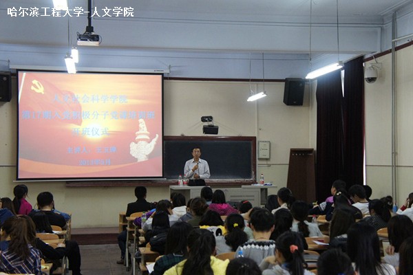 培训会一开始,董春辉主持宣布第17期入党积极分子党课培训开班。随后,第一期培训主讲人王玉�开始对与会人员进行培训。首先,他向大家进行了简短的自我介绍,同时对参加本次党课培训的全体入党积极分子表示欢迎,并对全体入党积极分子提出了若干要求,要求同学们在党课培训的过程中不断提高自己的政治素养和思想觉悟,以符合党对当代大学生党员的要求。接下来,王玉坤开始讲授党课培训的内容。本次培训内容共分为两部分,第一部分王玉坤以党的十八大为背景,用与积极分子们互相交流的方式,简述了中国共产党九十余年的光辉历史;第二部分,他请部分同学上台向大家交流各自的入党动机及相关心得体验,会上形成了良好的互动。
