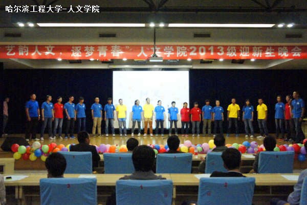 9月15日晚6点30分,pp电子游戏官网在启航活动中心多功能厅举办“艺韵人文,逐梦青春”2013级迎新生晚会。pp电子游戏官网党委书记王玉�、党委副书记杨国庆、法学系主任罗猛、团委书记兼学工办主任董春辉、131312班班主任陈福胜、131341班班主任唐国建、131351班班主任吴雨晨老师、131311班副班主任孙娜、辅导员马逢艺、辅导员张金秋及各院系学生会主席出席本次晚会。