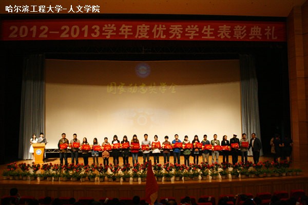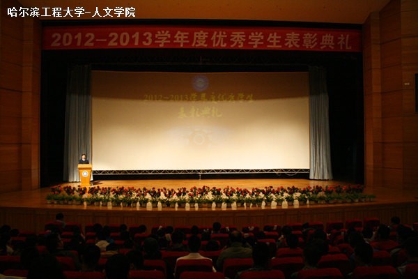 11月2日晚6时30分,pp电子游戏官网2012-2013学年度优秀学生代表表彰典礼于启航剧场隆重举行。中国航天科工集团第四研究院人力资源部薪酬二部部长蒋海燕、中国移动通信集团黑龙江有限公司哈尔滨分公司副总经理王恒石、企业管理部主任叶永文、江苏熔盛重工有限公司综合办主任薛飞、pp电子游戏官网党委副书记高晚欣、校纪委书记杨志宏、副校长杨德森出席本次表彰大会。全校各系学生均积极到场。