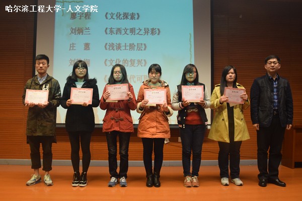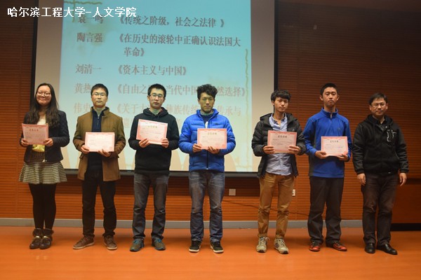 颁奖典礼分为两个部分。首先,主持人介绍到场领导及嘉宾。接着,那力、张爱国、杨国庆、袁雪作为颁奖嘉宾分别为获奖学生颁奖并合影留念。获得“优秀读书报告”奖项的同学为:来自2013级的牟群鹏、韩钰佳、李博、殷梦雯、冯振彦、马静、袁一鸣、陶言强、刘清一、黄热古、伟史土拉、马俊男,来自2014级的廖宇程、刘炳兰、庄蕙、刘静娴、罗楠、阚颖、朱子良、李梓嘉、周相宜、赵悦、袁媛、康健。