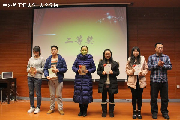 颁奖仪式开始前,团委赛事中心的工作人员布置会场,礼仪社的工作人员进行彩排。在主持人介绍到场嘉宾后,仪式正式开始。主持人首先宣布获奖者名单,随后董春辉为来自各个学院,各个年级的获奖者颁发获奖证书和奖品,并给予鼓励。随后,获奖者一一发表获奖感言,表示十分荣幸和开心。同时,董春辉与获奖者合影留念。其中,南明宇、王鑫获得一等奖,李颖超、阚颖等五人获得二等奖,马瑶、宋田田等八人获得三等奖。
