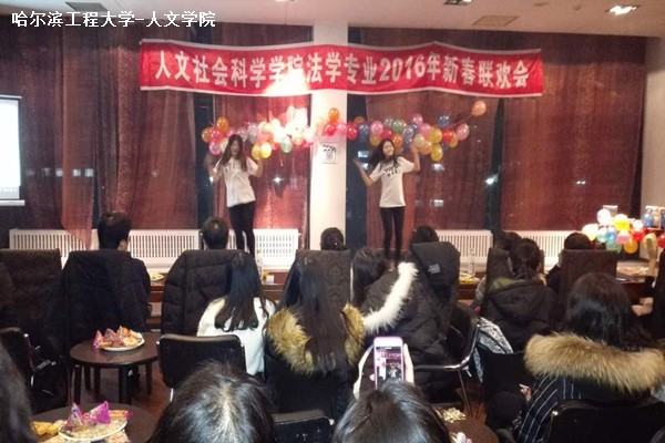 晚会由法学专业研究生赵宇鹏和本科生陈佳慧、王亚琦担任主持人。节目有歌曲、舞蹈、小品、游戏等,并设置了激动人心的抽奖环节。晚会以法学一班班委热情洋溢的舞蹈《萨瓦迪卡》拉开序幕,接下来同学们纷纷进行了精彩的才艺表演。王亚琦、蔡元婷等分别带来悠扬深情的《我只在乎你》和《梦中的额吉》,赵宇鹏、杨阳演出了令人捧腹的《双簧》,刘美辰、谢思琳的舞蹈《青春修炼手册》活力四射,窦慧琳、贺慧带来婉转清澈的《奇妙能力歌》,接下来是国合学院王静莹同学友情出演的街舞、屈蔚等带来的小品《辩论队》,以及合唱《我们屯儿里的人》,以上节目都给大家留下了深刻的印象。晚会还表彰了通过国家司法资格考试的优秀学生,号召大家向他们学习,由学院领导向研究生姜漪、刘艺两位代表颁发奖品。在老师们共同合唱一曲《让我们荡起双桨》后,郑莉院长上台致新年贺词并表达了对法学系同学们的期待与鼓励,晚会在温馨的氛围中结束。