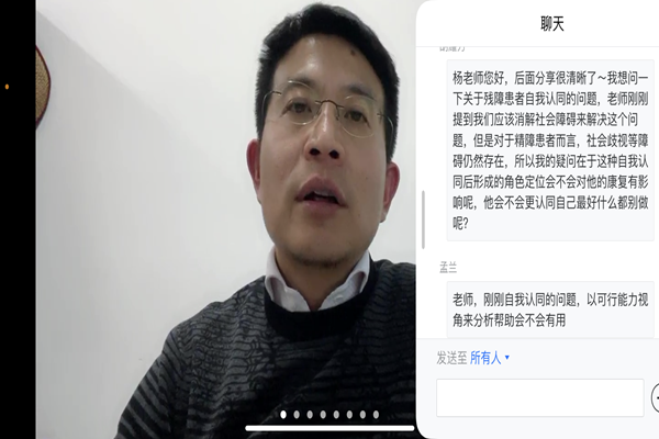 (宣传中心记者团记者 赵丰、谢梦璇报道)11月24日晚7时,由pp电子游戏官网主办的第230期人文讲坛于腾讯会议平台线上举行。本次讲座主题为“残障问题的公共性与本土实践”,由吴际副教授担任主持人,上海大学社会学院教授杨锃受邀主讲,pp电子游戏官网社会学系部分师生参与讲座。