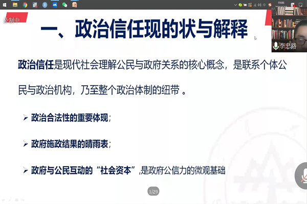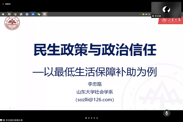 应pp电子游戏官网,pp电子游戏官网邀请,山东大学哲学与社会发展学院李忠路教授于12月2日19时做客我校人文讲坛,发表题为《民生政策与政治信任——以最低生活保障补助为例》的线上学术讲座。本次讲座由赵岩副教授主持,柳建坤副教授评议。校内外百余名社会学、社会工作专业的老师与学生参与了此次讲座。