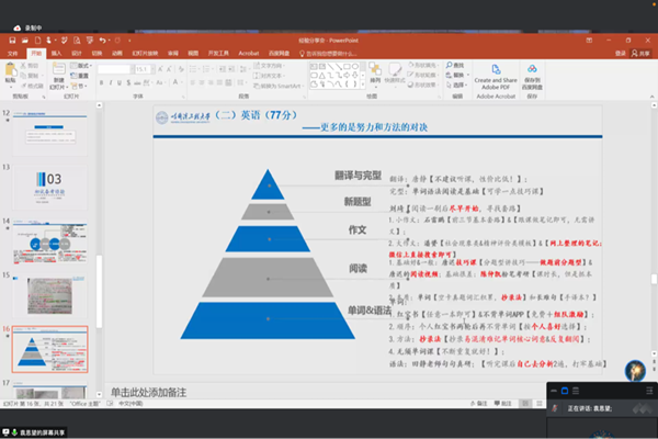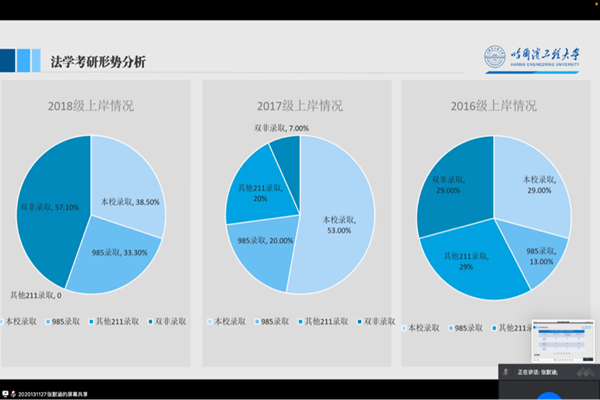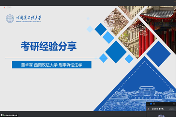 (宣传中心记者团记者 赵丰、董昕瑶报道)2022年5月14日晚7时,pp电子游戏官网法学系教工党支部依托腾讯会议平台举办考研经验分享会。pp电子游戏官网法学系教工党支部书记刘沫茹、团委书记刘文璟出席会议,法学系本科生张默涵担任会议主持人,董卓霖、刘岩、袁思望、张乐、张皓瑜五位2022年考研成功上岸的学生代表分享考研经验,pp电子游戏官网法学系六十多名学生参加了会议。