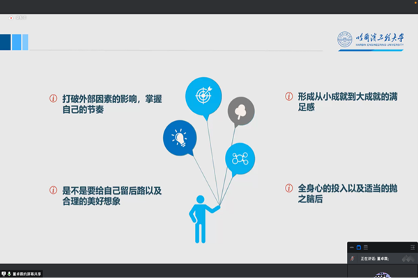 经验分享结束后,法学系教工党支部书记刘沫茹进行了总结。她指出,疫情之下,考研竞争日趋激烈,一定要结合形势的变化和自己实际情况合理设定目标。考研还是一个漫长枯燥的旅程,其间可能会心态崩溃、自我怀疑,所以既要全力以赴也要适时调整。无论考研成功与否,准备考试的过程都是对自己意志品格和专业能力的巨大锻炼。学习的成果并不仅仅体现在考试的分数,为自己的人生目标去积极努力,一定能够得到更大的成长。