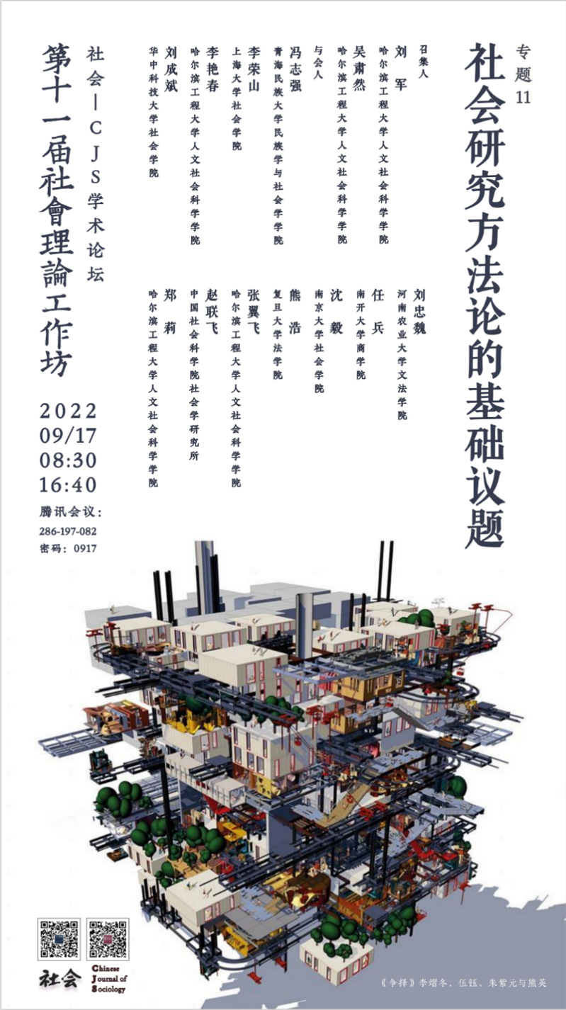 2022年9月17日,由《社会》编辑部,CJS编辑部主办,pp电子游戏官网社会学系承办的“第十一届社会理论工作坊之“社会研究方法论的基础议题”专题在线上线下同时举办。本次论坛来自青海民族大学民族学与社会学学院、上海大学社会学院、华中科技大学社会学院、河南农业大学文法学院、南开大学商学院、南京大学社会学院、复旦大学法学院、中国社会科学院社会学研究所、pp电子游戏官网等9所高校的13位学者齐聚云端,围绕社会研究方法论的基础议题展开精彩的报告、评议与讨论。本次论坛召集人为pp电子游戏官网刘军、吴肃然两位老师,论坛共有5位学院教师参加报告与评议。
