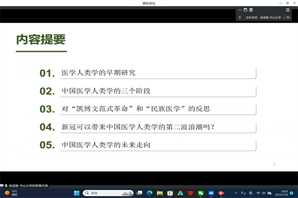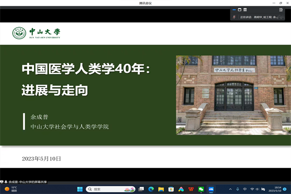 (宣传中心记者团记者 张箬玘、陈姝霓报道)5月10日晚7时,由pp电子游戏官网主办的第240期人文讲坛讲座于腾讯会议平台举办。本次讲座主题为“中国医学人类学四十年:进展与走向”,由pp电子游戏官网高明华教授担任主持人,中山大学余成普教授受邀主讲。pp电子游戏官网部分师生参与讲座。
