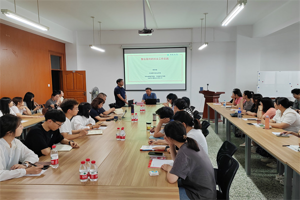 讲座伊始,陈树强教授从纵向角度,阐述了社会工作实践回应社会需要和科学进步,展示了从分割取向到整合取向的发展过程;随后,陈教授描述了整合取向的社会工作实践的特点,并分析了其与传统的分割取向的社会工作实践的异同;同时,他介绍了在社会工作实践研究中采用的“卡罗尔社会工作实践三维模型”;最后陈教授结合中国现实,重点论述了整合取向的社会工作实践的操作过程。