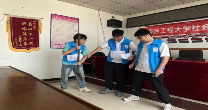 本次情景剧由颜世昊、赵兴东、夏博宇等同学出演,围绕“销售三无产品”、“土地经营”等与村民们日常生活息息相关的事件展开。剧中,村民们在村长的帮助下,最终以法律的手段和平地解决了纠纷。情景剧使村民们在轻松、幽默的氛围中进一步了解日常生活中的法治问题,引导村民们以法律的手段维护自身权益。