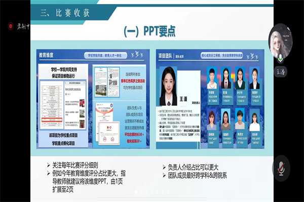 接着,王潘进行科创经验分享,从科创经历概述、比赛流程和比赛收获三个方面给同学们进行了耐心的讲解。最后,刘文璟对会议进行总结发言,解答了同学们在备战“互联网+”比赛时的常见问题并提供了与大学生创业有关的常用资料查询方式。