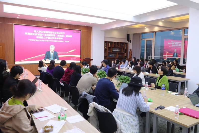 在政治理论学习环节,现场教师党员集体观看了教育视频,共同学习贯彻习近平总书记关于全面深化改革的一系列新思想、新观点、新论断和党的二十届三中全会精神。