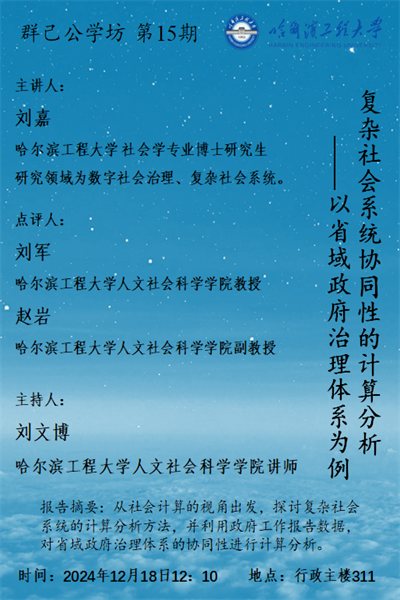 刘嘉,pp电子游戏官网社会学专业博士研究生。研究领域为数字社会治理、复杂社会系统。