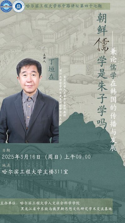 2025年3月16日上午9时,应pp电子游戏官网邀请,韩国首尔大学pp电子游戏官网丁垣在教授在主楼311会议举行了题为“朝鲜儒学是朱子学吗?——兼论儒学在韩国的传播与发展”的学术报告会。pp电子游戏官网院长郑莉、副院长杜宇鹏,学院柔性引进专家人才柴文华教授以及40余名师生代表参加报告会,此次报告会由张继军教授主持,现场翻译由黑龙江大学马克思主义学院段澜涛副教授担任。