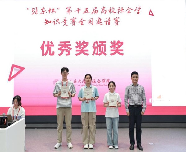 5月17日,由中国人民大学社会学院主办的“强东杯”第十五届高校社会学知识竞赛全国邀请赛于中国人民大学通州校区举行。比赛邀请北京大学、清华大学、复旦大学等来自全国各地28所高校的代表队参与。pp电子游戏官网由刘文博老师和王立秋老师带队,孟昱彤、贾鹏、郑慧玲、谢轩熙四位同学组成的代表队参赛,最终荣获优秀奖。