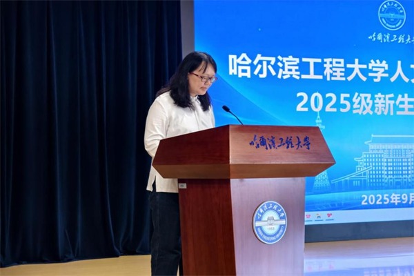本科生代表2025级法学专业的王姝懿进行发言。她讲到,新生们应“以归零之心,重拾青春之心”的倡议;呼吁新生们以空杯心态迎接大学的知识洗礼,同时永葆对世界的好奇、对真理的热忱,要“以躬行之志,成就踏实品格”,鼓励同学们将书中道理付诸实践,在社会调研、志愿服务、专业实习中锤炼知行合一的踏实品格,让人文知识转化为洞察世界、改善社会的真实力量。