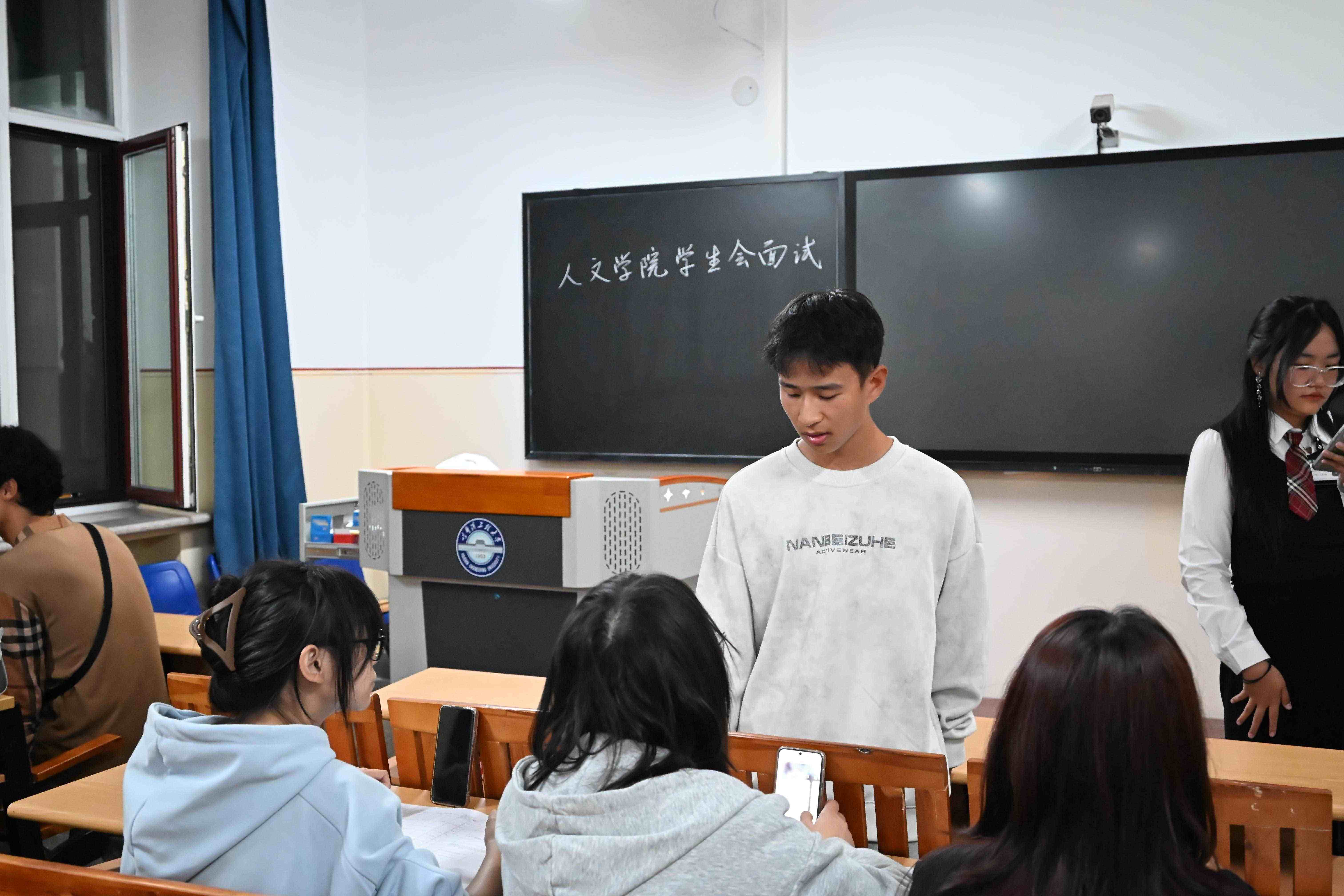 9月28日18:00至20:00,pp电子游戏官网团委与学生会在11号楼0143、0144教室同步开展了招新面试工作。各学生组织干部担任面试官,部分2025级本科生参加了此次面试。