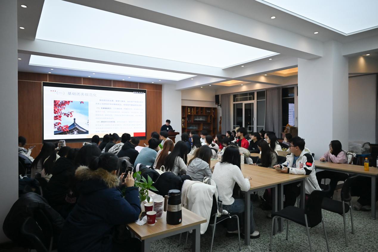 组织部以“基础团务规范化、团员教育常态化”为核心职责,扎实推进各项工作。全年坚持高标准、严程序发展新团员29名,精准完成团组织关系转接,确保团员信息流转有序、准确无误。组织系列主题团课,实现2025级全部团支部全覆盖,参与团员累计超100人次。部门内部定期召开工作例会,开展沟通技巧、公文写作等专项培训,助力成员综合素养提升。未来,组织部将针对团课团活形式创新不足、部分团支部工作不均衡等问题,进一步创新思想引领形式,强化部员业务能力与协同效率,推动组织工作再提质。