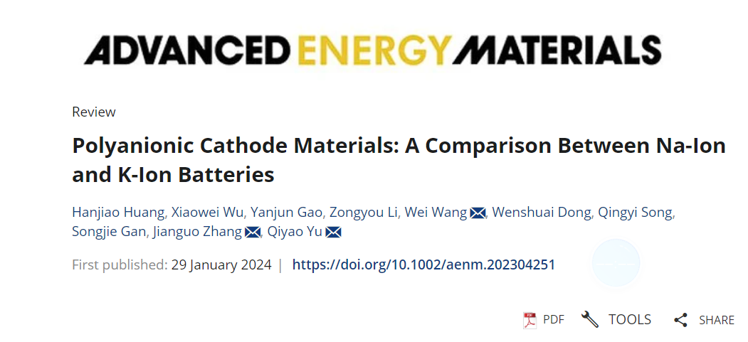 近日,jn江南·体育官网入口张建国教授团队在国际顶级期刊《Advanced Energy Materials》(影响因子27.800)发表题为《Polyanionic Cathode Materials: A Comparison between Na-ion and K-ion Batteries》的综述(DOI: 10.1002/aenm.202304251),文章综述了聚阴离子正极材料在钠/钾离子电池中的结构和性能上的差异。本单位通讯作者为张建国教授、于琪瑶副教授,第一作者为jn江南·体育官网入口2022级硕士生黄瀚蛟。