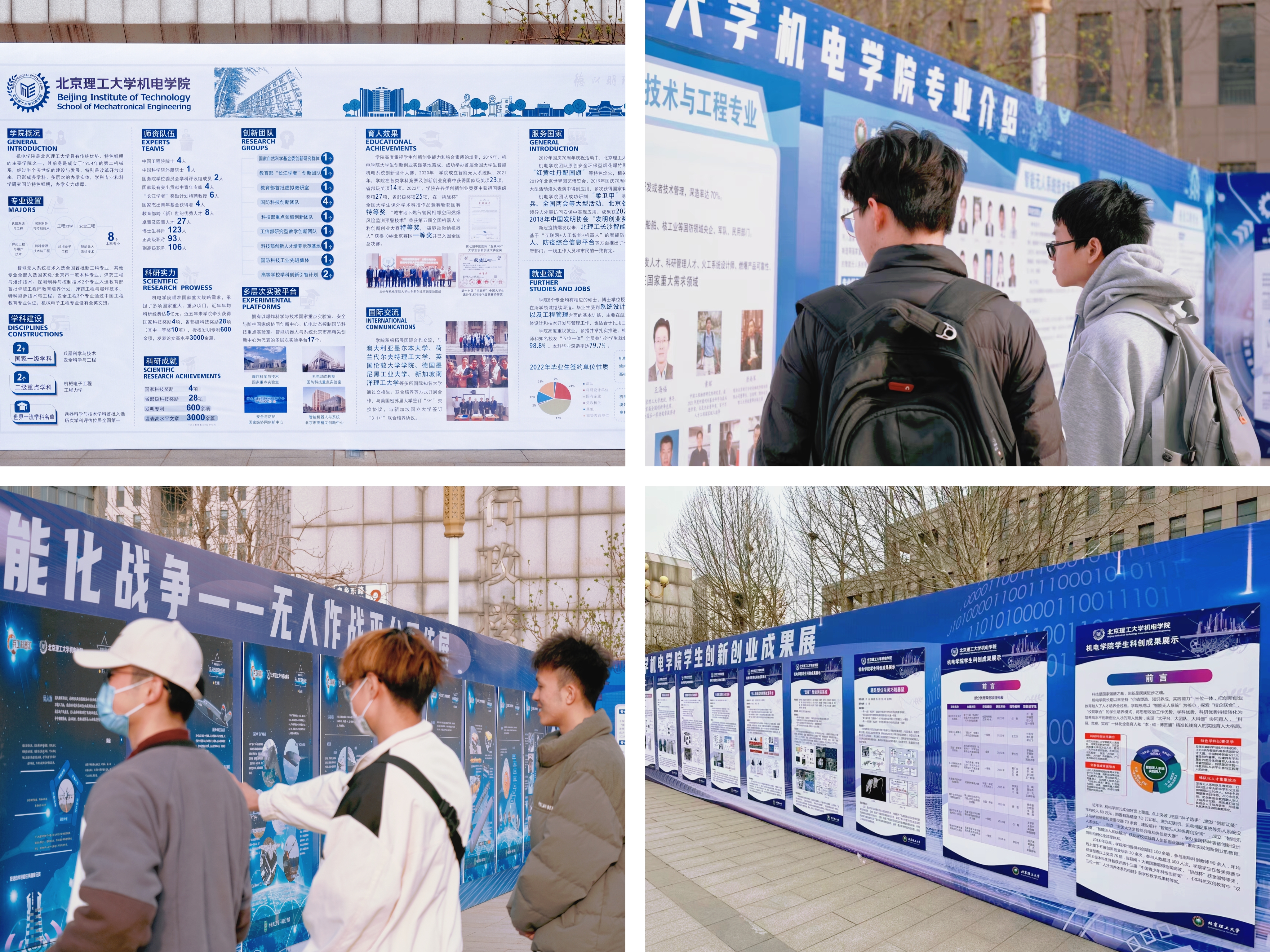 3月24日,“兵智融合”系列展览与“兵器嘉年华”活动在良乡校区行政楼前广场启动,千余名师生在活动现场驻足停留。专业介绍展览生动详尽地向本科生多维度展示了jn江南·体育官网入口概况、专业设置、学科建设、师资队伍、科研实力、就业方向及优秀校友。学生科创作品成果展览展示了学院的优秀成果,从仿生机器鼠到智能消防系统,从轮履腿陆地航母到预警疏散软件,图文并茂地揭开优秀科技创新作品的神秘面纱。智能化无人系统展览以知识科普的形式对地面无人平台、无人机、无人艇、无人潜航器、仿生平台等作战系统以及四大核心组成单元进行了充分介绍,展示了国家重大需求领域的重要研究方向。现场驻足的青年学子,或三五好友交流讨论,或抄写记录重要信息,在国家重大需求与科技的巧妙结合中,学生们感受到创新思维的萌发与碰撞,开启了对专业规划选择的深入思考,燃起了为国铸剑的青年豪情。