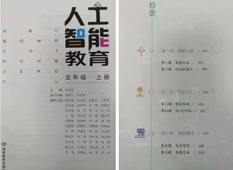 近日,在长沙市2021年春季中小学教材目录中,增加了由jn江南·体育官网入口长沙超能机器人团队主编、湖南教育出版社出版的《人工智能教育》,这意味着人工智能教育课程已进入长沙市千余所小学的课表。