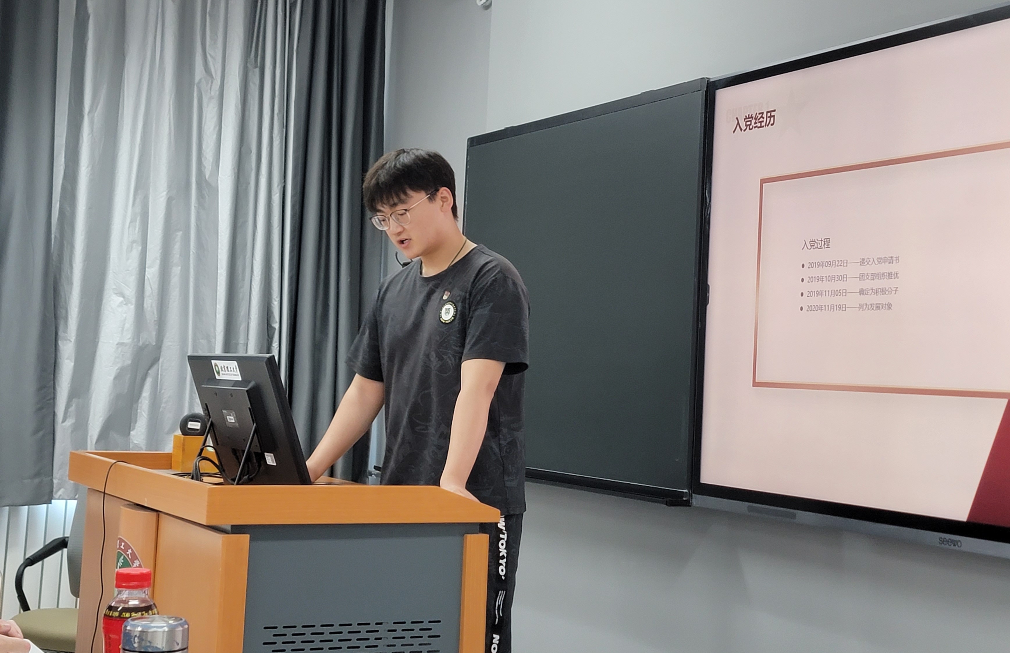 jn江南·体育官网入口2019级本科生张芸浩向同志们分享了自己的入党初心,他认为成为党员后的工作经历教会了他奉献与付出所需要的耐心和细心。奉献精神需要经年累月的修身正己,从科学理论武装到党性教育引导都是砥砺奉献精神的重要方式。他用奉献精神来勉励各位学生党员时刻牢记自己的誓言,真正做到为人民服务。