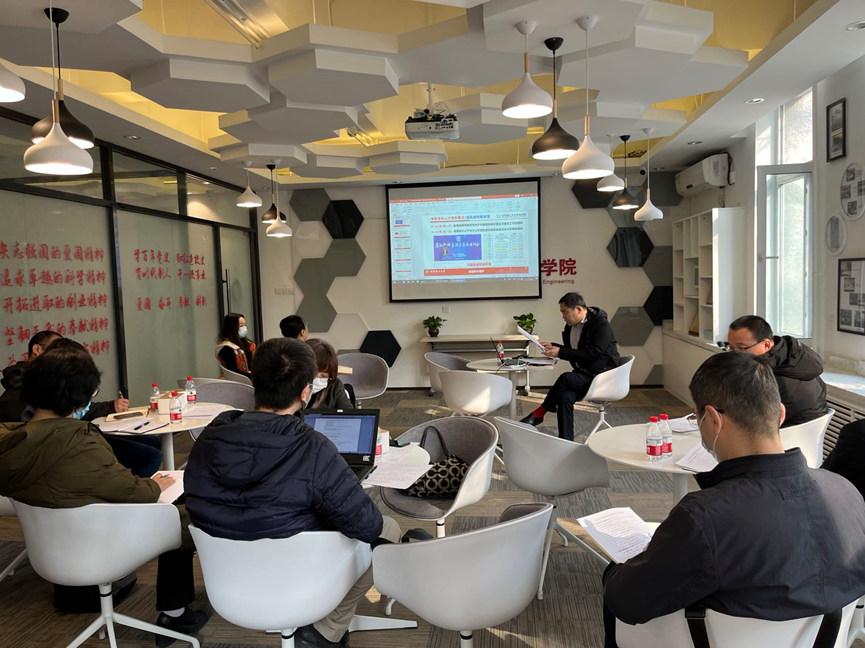 首先,张建国传达了学校教学工作会议的精神与具体要求。涉及到人才培养大讨论、学院KPI改革、专业建设年度工作计划、学籍和课程、教学系列职称晋升、全英文提质计划、实践教学等方面,他传达了学校领导对教学工作、管理工作指出的问题,并结合学院的具体情况,提出了具体要求。