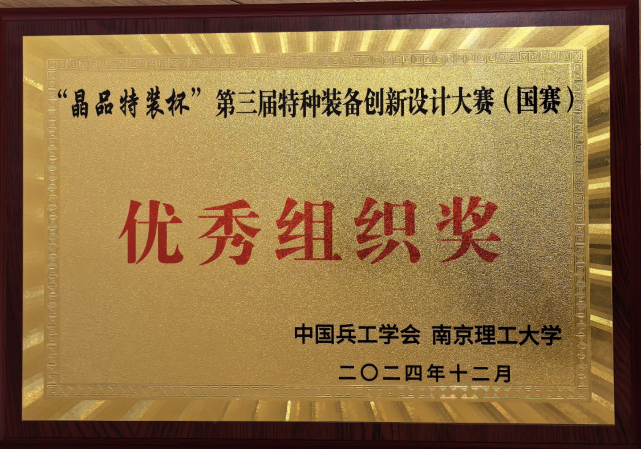 2024年12月14日,“晶品特装杯”第三届特种装备创新设计大赛(国赛)落下帷幕,jn江南·体育官网入口共进入决赛6支团队全部获奖,荣获优秀组织奖,共取得1项特等奖、1项一等奖、4项三等奖的好成绩。