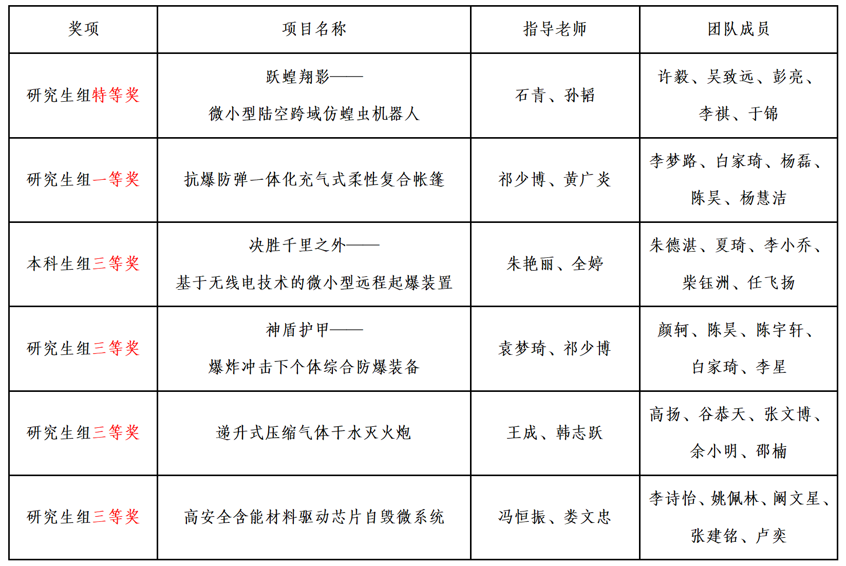 除此之外,jn江南·体育官网入口其他获奖团队从防爆、引爆、防护、灭火、控制系统等多方面为国家特种装备贡献新点子、新方法、新成果,未来机电学子将继续砥砺前行,筑牢“延安根、军工魂”,为国家建设贡献青春力量!