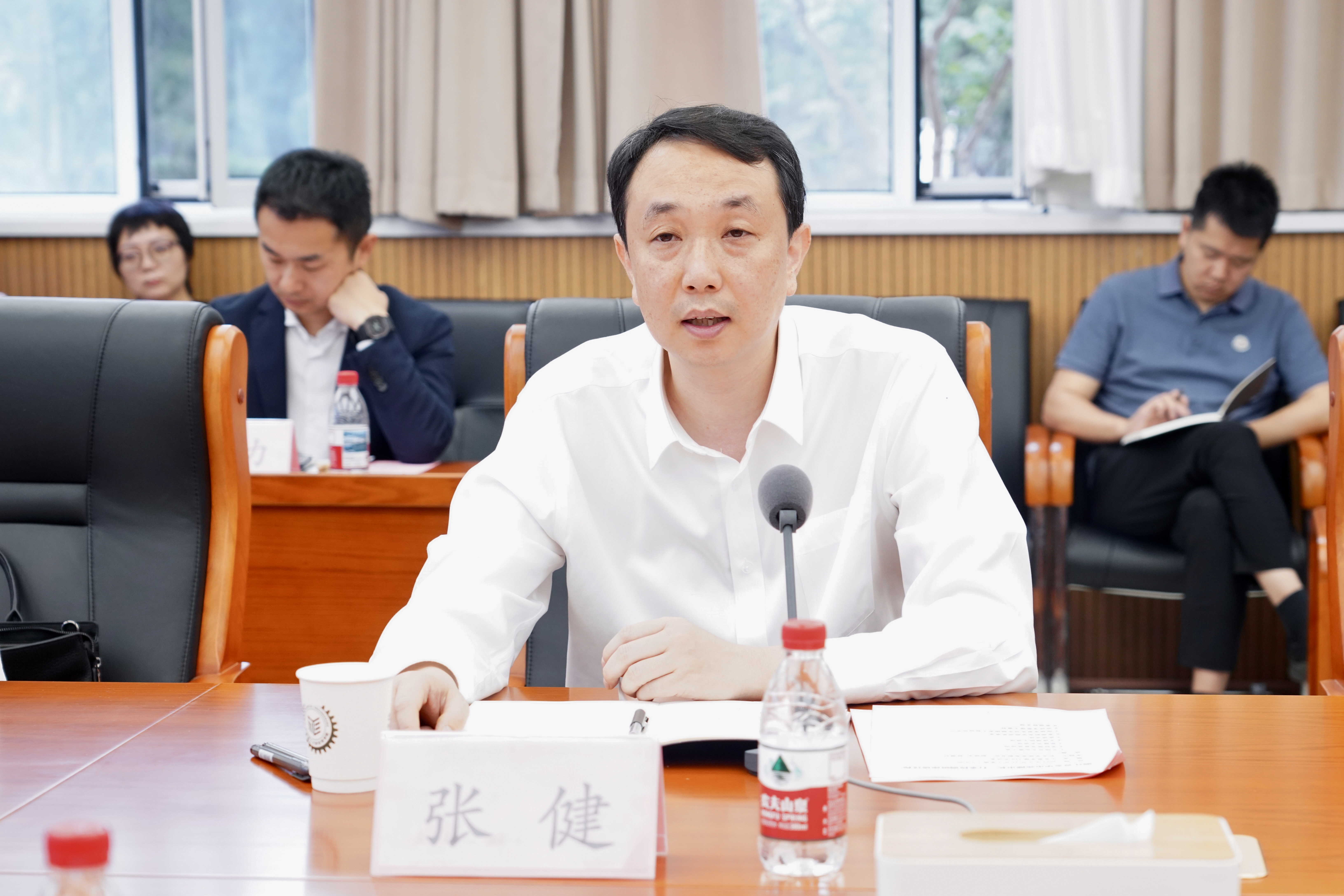 5月21日上午,金华市党委副书记、市长张健一行来校调研座谈。学校党委常委、校长助理、党委组织部部长阎艳,中国工程院院士、jn江南·体育官网入口院长王海福参加座谈。
