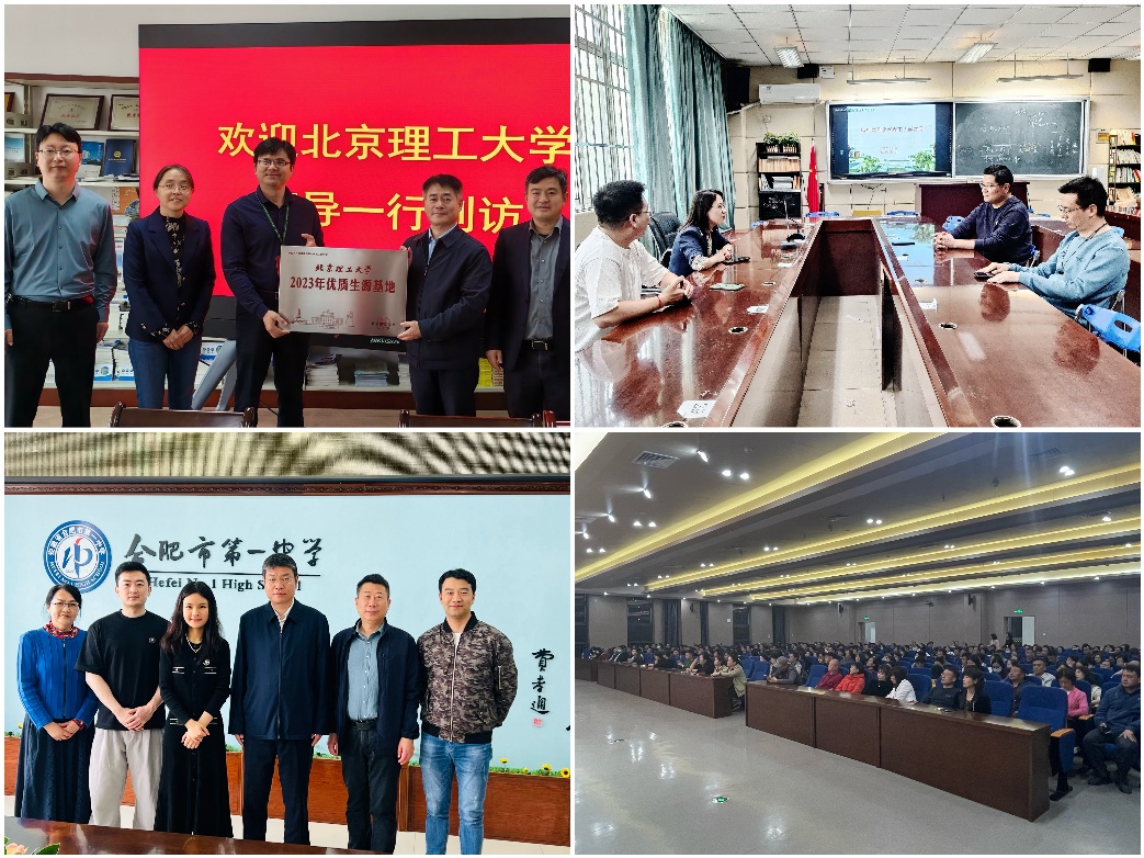 在14日至15日期间,刘彦、韩姗杉和袁梦琦副院长与招生组领航人分别走访合肥一中、合肥六中和合肥八中,与中学校领导,各校年级主任,以及创新班班主任座谈交流,详细介绍了近年来北各校的录取情与共育人才情况,解读了2024年招生政策亮点以及强基计划,向各校赠送喜报,并向合肥一中和合肥六中授予优质生源基地牌。期间领航人王化平在合肥六中进行了2024年高招政策宣讲会,取得了现场300余名家长的热烈反响。