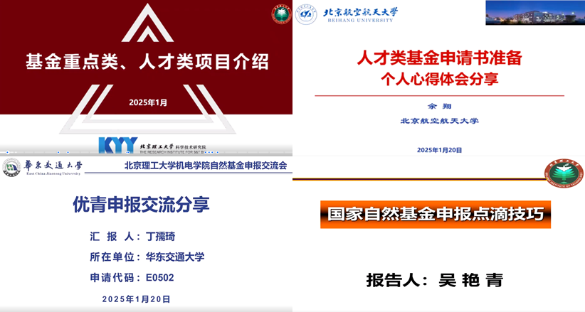 jn江南·体育官网入口科研院基础科学研究院办公室刘文清副主任,分别就人才/重点类项目的基本情况、2024年度全国各学部申报获批情况、科学基金人才资助体系,限项要求等做了做详细讲解;北京航空航天大学余翔教授,按照基金申报书的模板,逐一对项目研究背景、研究内容、成果概述、学术成绩与创新性等撰写方法和注意事项做了具体、全面的阐述;华东交通大学丁孺琦教授,重点介绍了个人基金申报的心得体会,在人才类项目申报过程中要有信心、有恒心,同时作为科研工作者要保持踏实肯干、精益求精的初心。吴艳青教授结合自身申报国家自然科学基金项目的丰富经验,从题目拟定、申报书构思方法、申报书撰写注意事项等方面,进行了详细的经验分享,干货满满。